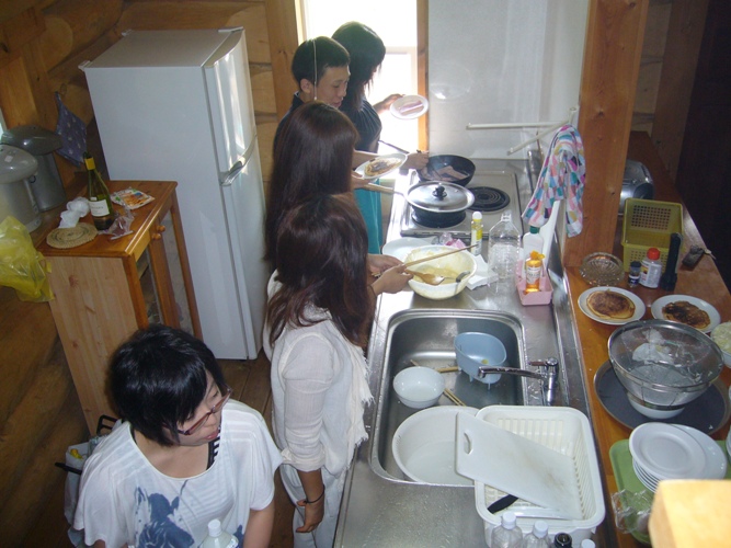 2日目最終日は朝の散歩から始まり、朝食作りの共同作業へ